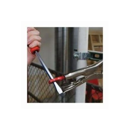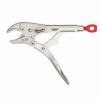 Pince-étau Milwaukee, levier à une main, gamme : torque lock, capacité nominale 2 po, mâchoire courbée, 1-3/16 po l x 31/64 po w x 31/64 po thk mâchoire, mâchoire en acier allié, longueur hors tout 10 po, oui couteau inclus, sans étincelles, poignée comfort, longueur de manche 6 po, chrome poli, noir/rouge
