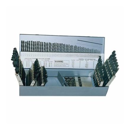 Cle-Line foret longueur jobber ensemble, à toute épreuve, gamme : 1801, système de mesure impérial, angle de pointe 135 deg foret, 115 pièces, spécifications : coupe à droite, goujure hélicoïdale, pointe fendue, queue droite, hss, oxyde vapeur