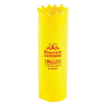 Starrett scie cloche, bimétal coupe profonde double pas, gamme : global series, 13/16 po diam., profondeur de coupe 2 po, 4 à 6 tpi, 5/8-18 arbre, tranchant hss, corps acier, tranchant denté, tige hexagonale, 7/16 po, 11/32 po queue, utilisez arbre : a2-e/a10-e, jaune, matériaux applicables : acier, inox (inox), non-ferrous metals, fonte, bois, bois clouté, placage, plastique, acrylique, fibre de verre, formica et plâtre