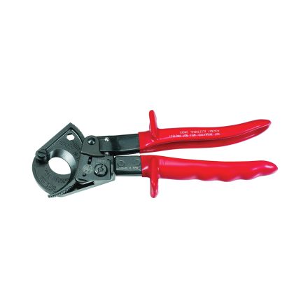 Klein® Ratcheting Cable Cutter, 400 kcmil Copper, 600 kcmil Aluminum, 1-1/8 in Communications Cable Cable/Wire, 10-1/4 in Overall Length, Ratcheting Jaw, Hard Steel Jaw, Dipped Grip Handle, 5-1/2 in Handle Length, Plastic Handle, Aluminum and Copper Cable Material Application, No, Red Handle