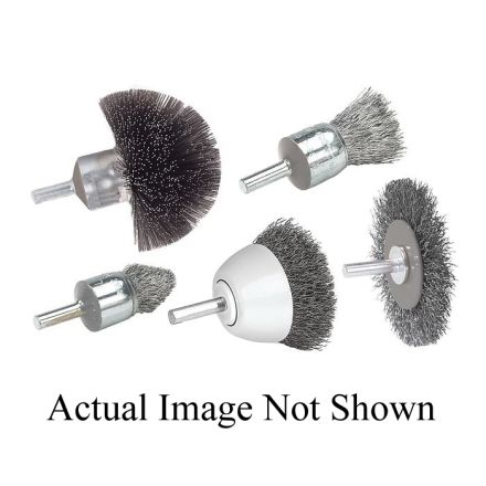 Walter Surface Technologies Brosse dextrémité montée ALLSTEEL, droit, brosse de 3/4 po de diamètre, 1/4 po de queue de diamètre, filament/fil frisé, 0,0118 po diam. filament/fil, Garni acier inoxydable, 25000 tr/min maximum