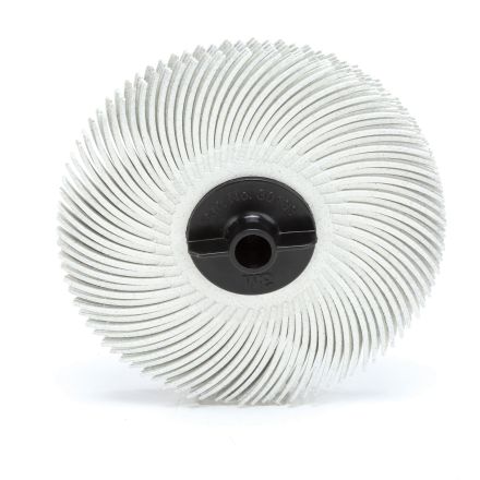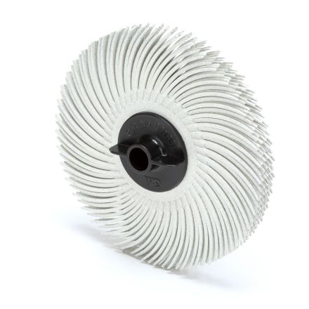 Adhésif brosse à disque à poils radiaux Scotch-Brite, brosse de 3 po de diamètre, taille 3/8 po alésage, grain 120, grain fin, remplissage céramique, 20000 tr/min maximum, couleur de la brosse blanche