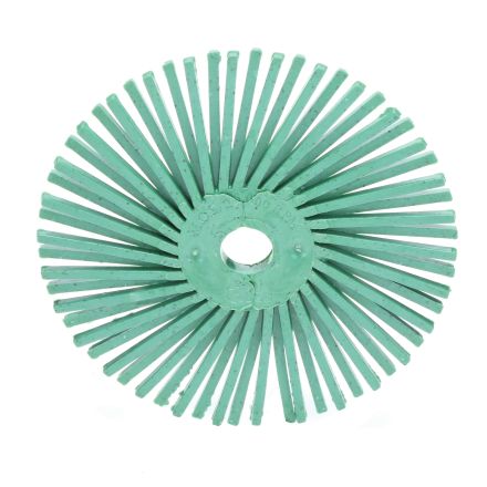 Scotch-Brite brosse à disque à poils radiaux, flexible, brosse de 3 po de diamètre, 3/8 po alésage taille, 50 grains, gros grain, remplissage céramique, 25000 tr/min maximum, couleur verte de la brosse