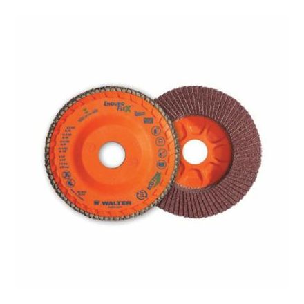 Walter Surface Technologies enduro-flex disque à feuillets abrasif, densité standard proche, gamme : disque 15-q, diamètre 4-1/2 po, 7/8 po trou central, grain 40, gros grain, abrasif zircone alumine, disque de type 27, support plastique, 13300 tr/min maximum, orange
