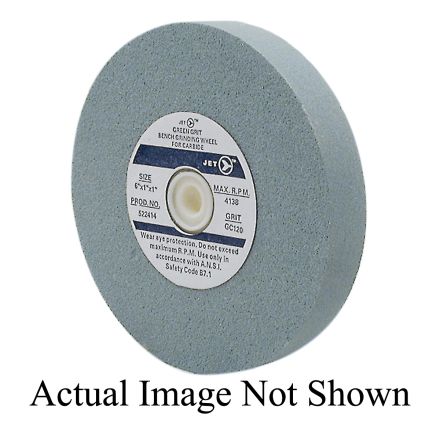 JET meule détabli, droit, roue 6 po diam., 1 po dépaisseur de roue, 1 po trou central, gc120 grain, grain fin, abrasif de carbure de silicium, 4138 tr/min maximum, liant vitrifié, matériaux applicables : carbure, matériaux non ferreux et carbure de tungstène
