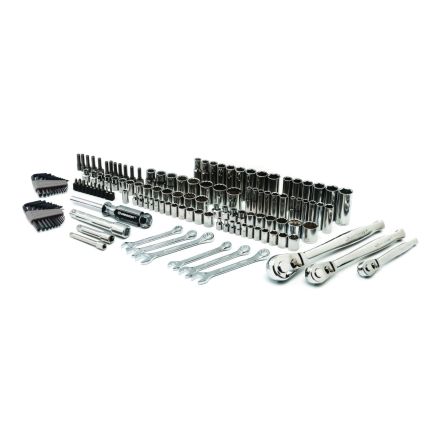 Crescent Mechanics Tool Set, 1/4 in, 3/8 in and 1/2 in Drive, 6 and 12-Point, 142 Piece, Blow Molded Case Tool Storage, Specifications Met: ANSI/ASME Specified, Alloy Steel, Polished Chrome