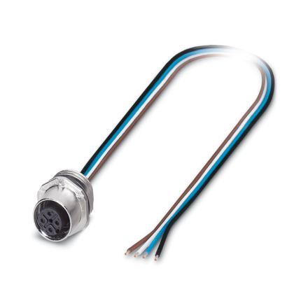 Embases paroi avant, Universel, 4-pôles, connecteur femelle, droit, M12-SPEEDCONNEC, codage: A, sur extrémité libre, Montage sur face avant, M16 x 1,5, Cordons individuels, longueur de câble: 2 m, 0,34 mm², Cordon TPE, coulé