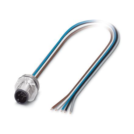 Embases paroi avant, Universel, 5-pôles, Connecteur mâle, droit, M12-SPEEDCONNEC, codage: A, sur extrémité libre, Montage sur face avant, M16 x 1,5, Cordons individuels, longueur de câble: 0,15 m, 0,34 mm², Cordon TPE, coulé