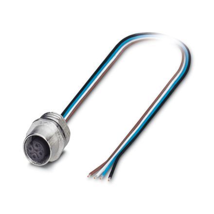 Embases paroi avant, Universel, 4-pôles, connecteur femelle, droit, M12-Standard, codage: A, sur extrémité libre, Montage sur face avant, Pg9, Cordons individuels, longueur de câble: 4 m, 0,34 mm², Cordon TPE, coulé