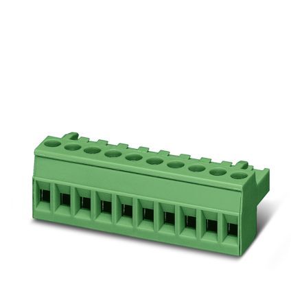 Connecteur de plaque conductrice, section nominale: 2,5 mm², coloris: vert, intensité nominale: 12 A, tension de référence (III/2): 320 V, surface des contacts: Sn, type de contact: Connecteur femelle, nombre de potentiels: 4, nombre de rangées: 1, nombre de pôles: 4, nombre de connexions: 4, gamme d'articles: MSTBT 2,5/..-ST, pas: 5 mm, type de raccordement: Raccordement vissé avec bague, surface d'attaque des vis: L Fente longitudinale, sens d'enfichage conducteur/circuit imprimé: 0 °, plan des broches: Brochage linéaire, clip de verrouillage: - Clip de verrouillage, système débrochable: COMBICON MSTB 2,5, verrouillage: sans, type de fixation: sans, type de conditionnement: emballé dans un carton