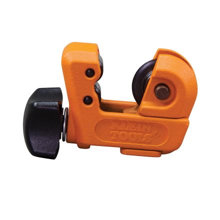 Coupe-tube Klein, mini, 1/8 à 5/8 po nominal, tranchant aluminium/cuivre, acier lame, 1.469 po longueur totale, corps en alliage de zinc moulé, revêtement en poudre noire sur la poignée en alliage, poignée en alliage, matériaux applicables : aluminium et cuivre, oxyde noir