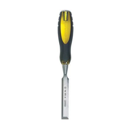 Stanley bois fatmax thru-tang burin, bi-matière court lame, pointe biseautée, pointe 1/4 po, pointe en acier allié au chrome à haute teneur en carbone, 1/4 po lame largeur, longueur totale 9 po, poignée ergonomique, poignée en acétate/caoutchouc, oui résistant à la corrosion, acier allié au chrome à haute teneur en carbone