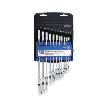 JET jeu de clés mixtes, tête flexible clé à cliquet, système de mesure : métrique, 8 à 19 mm, 11 pièces, acier au chrome vanadium, entièrement poli