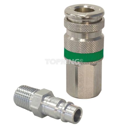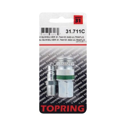 TOPRING kit de connexion de coupleur, connexion automatique doutil pneumatique, gamme : quiksilver s31, pression de service de 500 lb/po-ca, 80 pied cube standard par minute débit dair, 2 pièces, a utiliser avec : bouchons de type européen cejn 320, importer