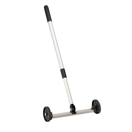 - Rolling unit with powerful magnetic head 11-1/2 in wide lifts nails, screws, nuts, bolts and small machined parts