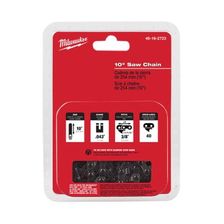 Milwaukee chaîne de scie, sans fil, A utiliser avec : Milwaukee 49-16-2720 m18 fuel quik-lok Scie à poteau 10 po, barres de trait de scie étroites, 0.Calibre 043 po, 40 po l prise, 10 po l bar, 3/8 po low profile terrain, 10 po lx 0.04 po wx 0.5 po h