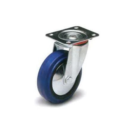 Roulette de plaque Tuff Grade, pivot, 770 livres, roue 6 po diam., largeur de roue 2-3/8 po, roue en caoutchouc élastique, roue bleue, roulements de roue à rouleaux, assiette 4-1/8 x 3-1/16 po