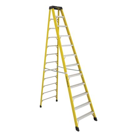 Escabeau Featherlite, extra - à toute épreuve, gamme : 6400, hauteur de léchelle de 12 pi, charge de 300 lb, code ansi : type ia, fibre de verre, 33-1/4 po de base étalée, largeur inférieure de 77-1/8 po