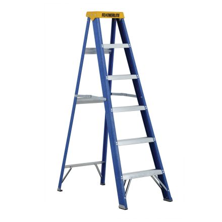 Escabeau Featherlite, à toute épreuve, gamme : 6300, hauteur de léchelle de 5 pi, charge de 250 lb, code ansi : type i, fibre de verre, 20-1/8 po de base à tartiner, largeur inférieure de 34-1/2 po