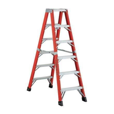 Featherlite Escabeau , double façade super-à toute épreuve, gamme : 6600-aa, hauteur déchelle de 4 pi, charge de 375 lb, code ansi : type iaa, aluminium, écart de base de 21-1/4 po, largeur inférieure de 37-7/8 po