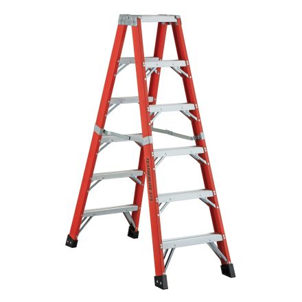 Featherlite Escabeau , double façade super-à toute épreuve, gamme : 6600-aa, hauteur déchelle de 6 pi, charge de 375 lb, code ansi : type iaa, aluminium, écart de base de 24-1/4 po, largeur inférieure de 52-3/4 po