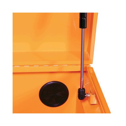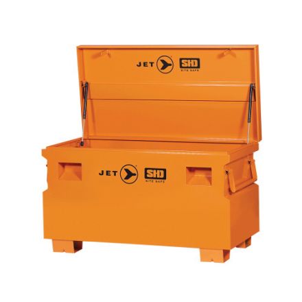 JET boîte de rangement des outils de chantier, super à toute épreuve, largeur hors tout 48-1/8 po, profondeur totale de 24-1/8 po, hauteur hors tout 24-1/8 po, stockage de 16 pi-cu, 16 ga, acier, orange, couvert de poudre