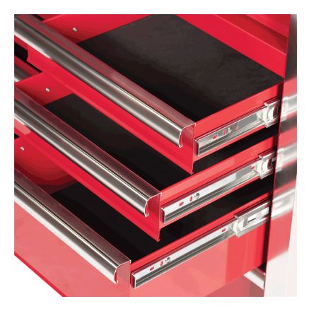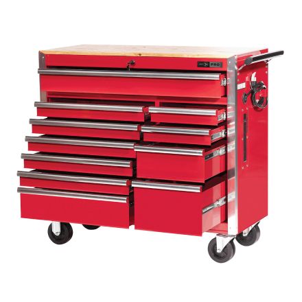 JET armoire sur roulettes, gamme : pro series, 41.06 po largeur, 18.14 po profondeur, 39.37 po hauteur, (1) 12.2 po w x 15.1 po dx 8.9 heures, (1) 12.21 po w x 15.1 po dx 5.8 po h, (1) 36.6 po w x 15.1 po dx 4.2 heures, (1) 22.1 po wx 15.1 po dx 5.8 heures, (2) 12.2 po w x 15.1 po dx 2.7 po h et (5) 22.1 po wx 15.1 po dx 2.7 h tiroir, 11 tiroirs, 2 émerillons, 2 roulettes fixes, 5 x 2 po roulette, charge de 1300 lb, 12464.Stockage de 6 m³, capacité de 100 lb tiroir, acier