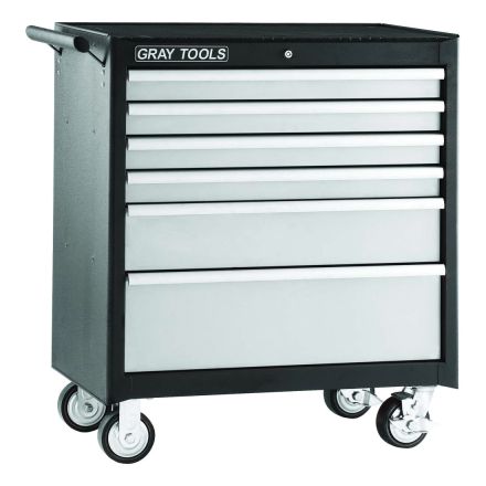 Gray Tools armoire sur roulettes, gamme : marquis, largeur 34 po, 19-1/2 po de profondeur, 39-1/8 po de hauteur, (1) 8-7/8 po hx 29-1/2 po w x 17-1/4 po d, (1) 6 po hx 29-1/2 po w x 17-1/4 po d, (4) 2-7/8 po hx 29-1/2 po w x 17-1/4 po d tiroir, 6 tiroirs, 4 roulettes, roulette 5 x 1-1/2 po, 13357 po-cu, ovale, acier, peinture enduite de poudre, noir