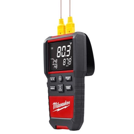 Thermomètre à contact Milwaukee, type k numérique, -328 à 2500 deg f, précision de lecture de 0,1 %, contraste élevé blanc sur écran noir, pile alcaline, plastique, noir/rouge