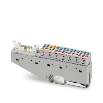 VARIOFACE Front Connect, module interface IDC/FLK pour le système de précâblage avec raccordements Push-in en face avant, pour 8 canaux et blocs de jonction de potentiel positif et négatif supplémentaires pour le raccordement de capteurs à 3 conducteurs, nombre de pôles : 14, largeur : 19 mm