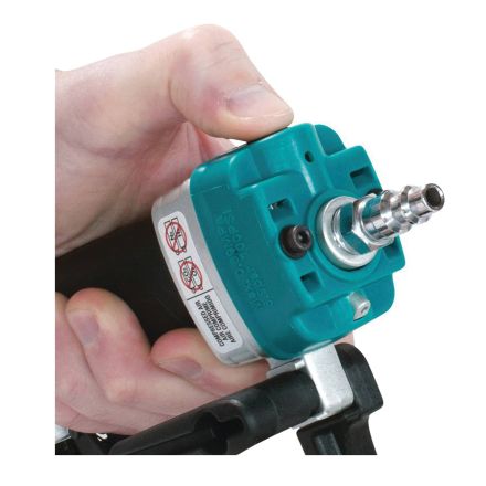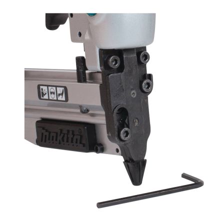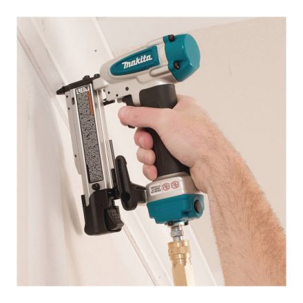 Makita cloueur de goupille, outil nu, Fixation 5/8 à 1-3/8 po, Magazine de 130 clous, Air de 65 à 100 psig, poignée côtelée antidérapante en caoutchouc souple, Niveau sonore 73 dba, Épaisseur maximale du matériau 23 ga, 8-3/16 po lx 2-5/8 po wx 7-1/2 po h dimensions