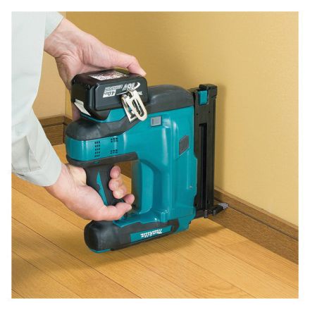 Makita cloueuse sans fil Brad, outil nu outil/kit nu, Attache 5/8 à 2 po, pour le type de fixation : Cloueuse Brad sans fil de calibre 18, collation adhésive, droit classement, Magazine de 100 ongles, chargement de bâton, déclenchement séquentiel/bump, pas de marre avec la pointe des lignes de vue, 18 V cc, source dalimentation de batterie, lxt Batterie aux ions lithium, Batterie 3/4/5 Ah, batterie incluse : non, poignée ergonomique en caoutchouc souple, Longueur totale 11-5/8 po, Dimensions 12-1/2 po hx 3-13/16 po w
