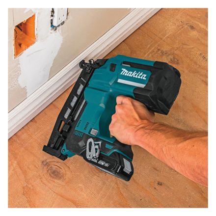 Makita cloueuse de finition sans fil, outil nu outil/kit nu, Fixation 1 à 2-1/2 po, pour le type de fixation : Cloueuse de finition sans fil de calibre 16, Magazine de 100 ongles, gâchette de verrouillage, 18 V cc, source dalimentation de batterie, lxt Batterie aux ions lithium, batterie incluse : non, poignée ergonomique en caoutchouc souple, 11-5/8 po lx 4-1/4 po lx 12-1/2 po h dimensions