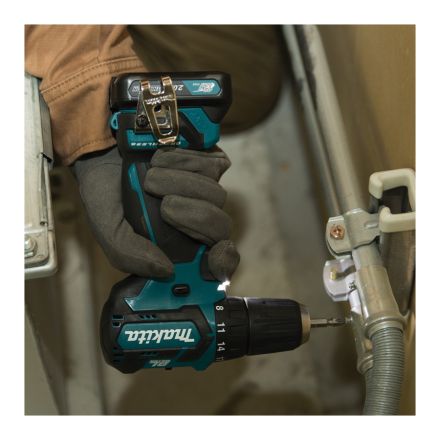 Makita sans fil foret /driver, réversible, outil nu outil/kit nu, Acier 3/8 po, Mandrin à bois 1-1/8 po, mandrin sans clé, 0 à 450 tr/min, 0 à 1500 tr/min à vide, 2 vitesses, Couple de 280 po-lb, 12 V cc, cxt SLIDE batterie lithium-ion, 1.Batterie 5/4 Ah, batterie incluse : non, poignée ergonomique en caoutchouc souple, contrôle variable, Niveau sonore de 72 dba, 6-1/16 po de longueur totale