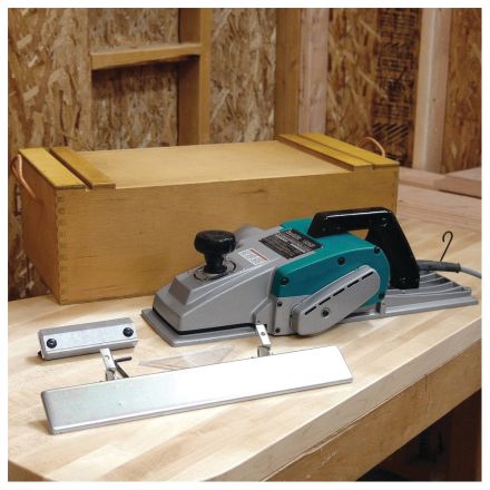 Makita raboteuse, outil nu, Largeur de coupe 6-3/4 po, 1/16 po de profondeur de coupe, 30000 coupes cpm par minute, Vitesse de 15000 tr/min, 120 vca, dix.9 a, matériau aluminium/plastique boîtier, fil, Niveau sonore de 92 dba, interrupteur à gâchette verrouillable, Dimensions 20-3/4 po l