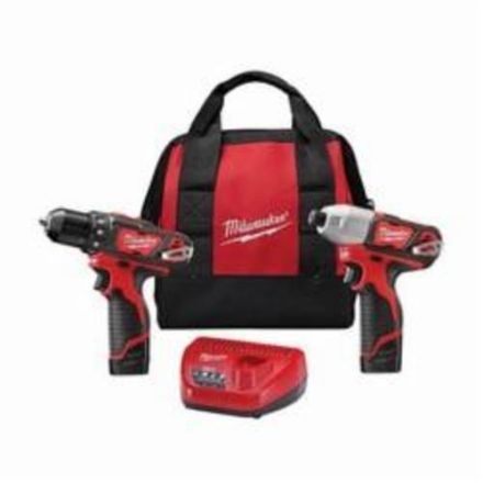 Kit combiné sans fil Milwaukee, 2 outils, gamme : m12, foret, tournevis à percussion, 12 v cc, lithium-ion, batterie 1,5 ah, spécifications : à clé lame, 6 pièces, rouge