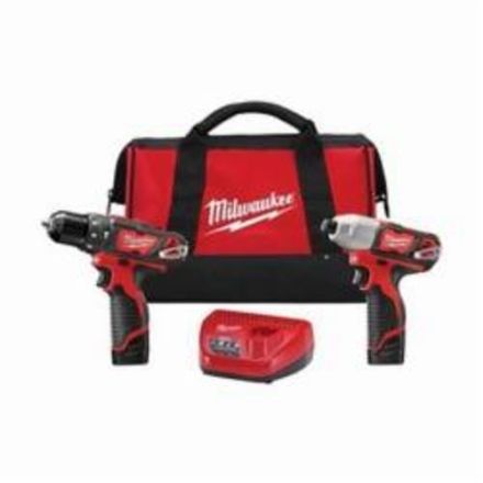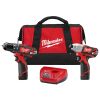 Kit combiné sans fil Milwaukee, 2 outils, kit outil/kit, gamme : m12, perceuse à percussion, outils de tournevis à percussion, 12 v cc, chimie des batteries lithium-ion, batterie de 1,5 ah, à clé lame, 6 pièces, noir/rouge/ argent