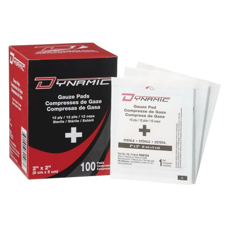 DYNAMIC tampon de gaze, stérile, 2 po lx 2 po l, 12 plis
