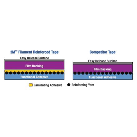 Scotch ruban à filament, 55 m de long, 36 mm de large, 5 mil dépaisseur, matériau de filament de fil de fibre de verre, transparent, âme de 3 po de diamètre, adhésif en caoutchouc synthétique, support en polypropylene, force dadhérence de 50 po-oz, résistance à la traction de 170 po-lb, 80 deg f en fonctionnement maximum, 40 deg f en fonctionnement minimum, spécifications respectées : astm d3330/d3759/d3652