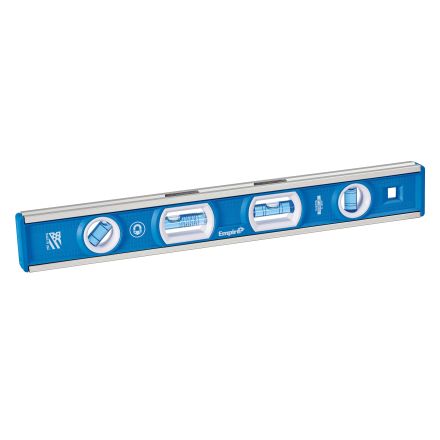Milwaukee? Empire? true blue? bo?te ? outils, magn?tique robuste, 0,0005 po de precision, 24 po de longueur, 2-1/4 po de largeur, 3 flacons, positions des flacons: (1) 45 deg, (1) niveau, (1) Plumb, (1) vari-pitch, flacon ? lecture sup?rieure, aluminium, bleu/ argent