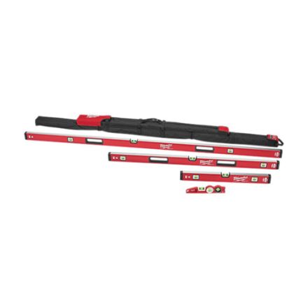 Milwaukee Kit de démarrage de niveau , magnétique, précision de 0,0005 po, 10 po, 24 po, 48 po, 78 po de longueur, 2,53 po de largeur, 5-1/4 po de hauteur, 3 flacons, positions des flacons : (1) niveau/(2) plomb, aluminium, noir/rouge