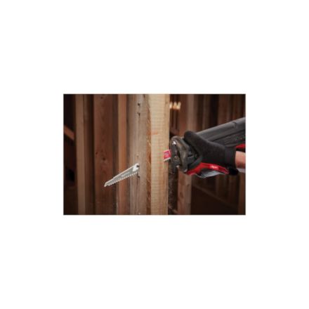 Scie alternative Milwaukee lame, dos conique, longueur 9 po, épaisseur 0,05 po, 5 tpi, dents ax sawzall, dent 1/2 po, denture universelle/dentée, tranchant en carbure, corps en carbure, rouge, matériaux applicables : bois noyé, bois, clou, vis, bardeau, plâtre, durock, synthétique, contreplaqué, matériaux composites et résidentiels