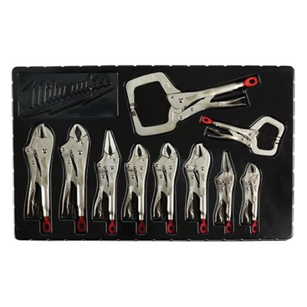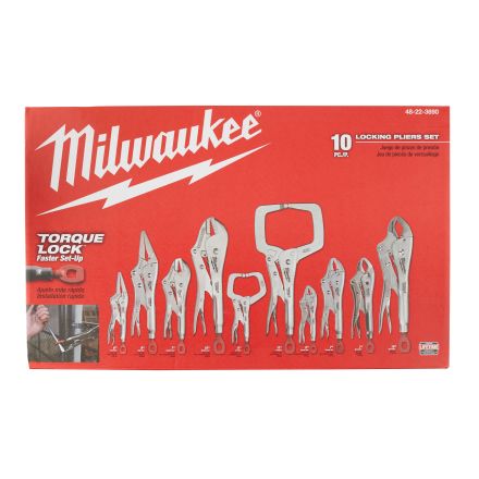Milwaukee Kit de pinces torque lock, pinces-étaux, 10 pièces, 15,6 po de longueur totale, acier allié, argent, dimensions 25,2 po l x 1,2 po h