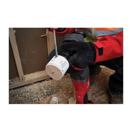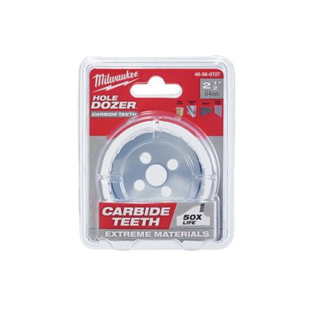 Milwaukee hole dozer scie cloche, 2-1/2 po diam., profondeur de coupe de 1,62 po, 4 tpi, 7/16 po arbre, longueur hors tout de 1,88 po, tranchant en carbure, tige hexagonale, 3/8 po, 7/16 po queue, utilisez arbre : 49-56-7010, 49-56-7250, matériaux applicables : acier inoxydable, matériau abrasif et bois de fixation incorporé