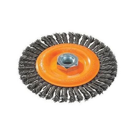 Walter Surface Technologies brosse circulaire, 6-7/8 po brosse diam., 1/4 po largeur, 5/8-11 alésage taille, fils noués/ fil noué/type de fil, filament 0,02 po/diamètre de fil, remplissage en acier, 9000 tr/min maximum, arbre fileté attache