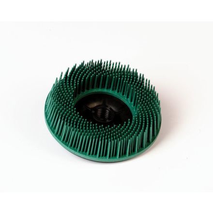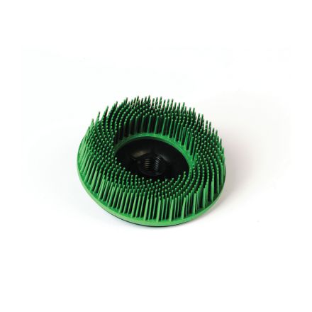 Brosse à disque en soies Scotch-Brite, flexible droit fileté, brosse 4-1/2 po diam., 5/8-11 trou central, remplissage céramique, 12000 tr/min maximum, gros grain, 50 grains