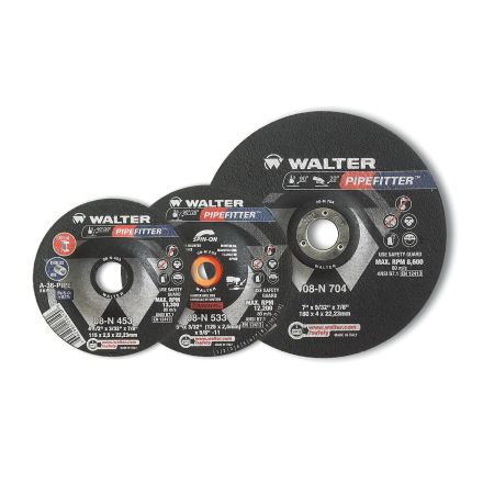 Walter Surface Technologies pipefitter meule à moyeu déporté, diamètre de roue 6 po, roue 1/8 po, 7/8 po trou central, connecteur arbre, grain 24, extra gros grain, abrasif à loxyde daluminium, numéro de type de roue : type 27, 10200 tr/min maximum, liant résinoïde, matériaux applicables : acier inoxydable et acier, renforcé : oui, spécifications respectées : ansi b7.1, en 12413