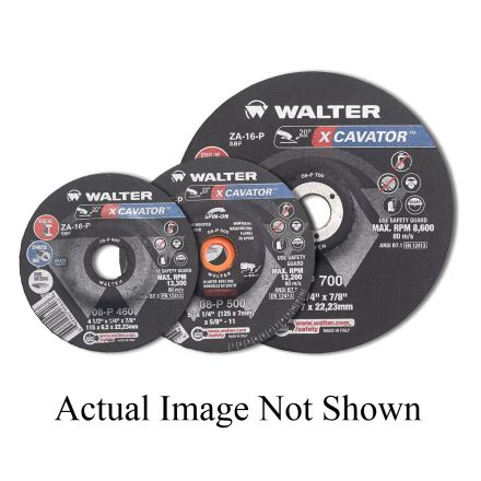 Walter Surface Technologies xcavator meule à moyeu déporté, ultra enlèvement élevé, diamètre de roue 5 po, roue 1/4 po, 7/8 po trou central, arbre connecteur, grain 16, extra gros grain, abrasif zircone alumine, numéro de type de roue : type 27, 12200 tr/min maximum, liant résinoïde, matériaux applicables : alliage, fonte, acier inoxydable, acier, tungstène et métal dur, spécifications respectées : ansi b7.1, en 12413