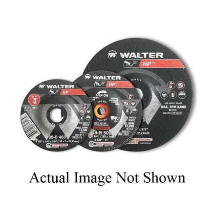 Walter Surface Technologies meule à moyeu déporté, high performance, gamme : hp, diamètre de roue 4-1/2 po, roue 1/4 po, 7/8 po trou central, connecteur arbre, grain 24, extra gros grain, aluminium abrasif à loxyde, numéro de type de roue : type 27, 13300 tr/min maximum, liant résinoïde, matériaux applicables : fonte et acier, roue noire, spécifications respectées : ansi b7.1, en 12413