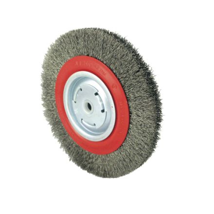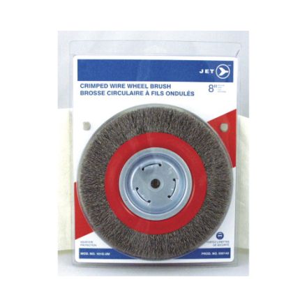 JET fil brosse circulaire, high performance moyenne, 8 po brosse diam., 7/8 po largeur, 1/2 po, 5/8 po, 2 po alésage taille, filament serti/type de fil, 0.014 po filament/diamètre du fil, remplissage en acier à haute teneur en carbone trempé, 4500 tr/min maximum